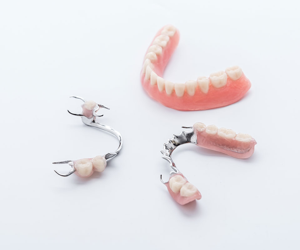 If the patient is missing several teeth but not all of them, partial dentures are used to replace the missing teeth. They help to prevent the remaining natural teeth from shifting out of place.