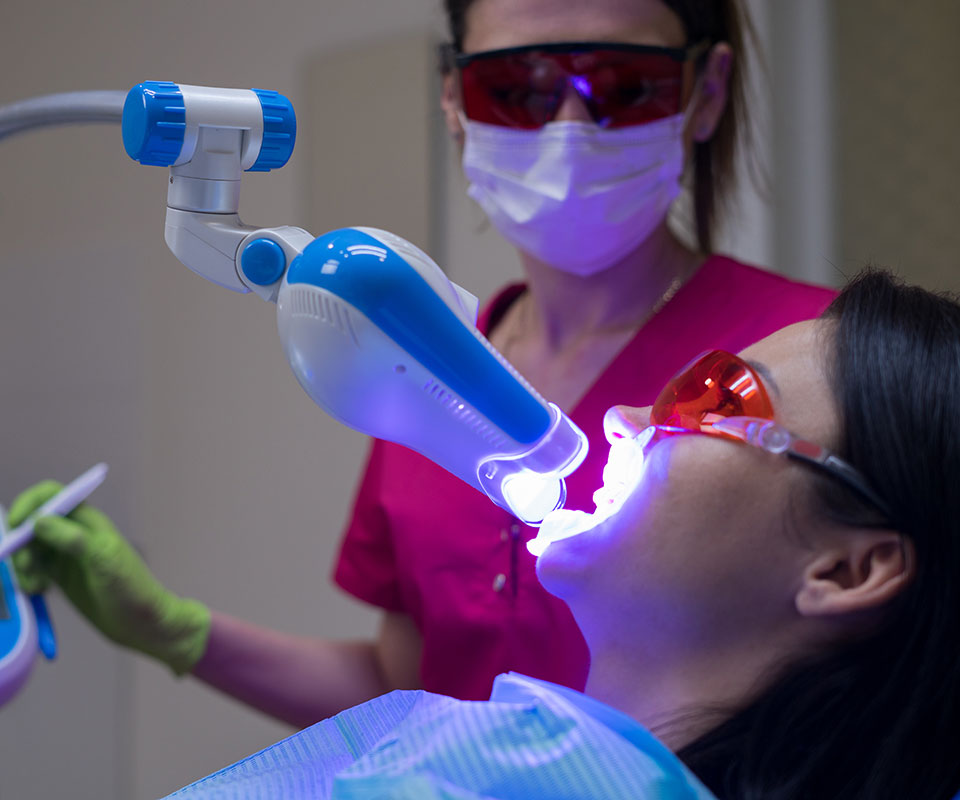 This is the latest technology available in teeth whitening. An in-office procedure using our advanced technology LED light combined with 25% hydrogen peroxide gel to achieve results of up to 8 shades whiter in as little as 45 minutes chair time (excluding prep time)